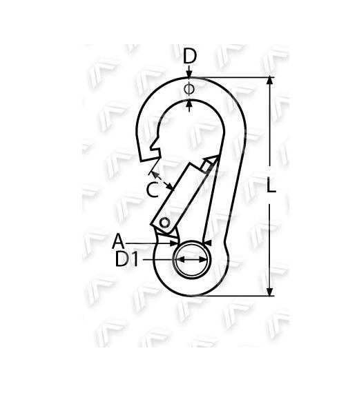 Wysokiej jakości karabińczyk z kauszą wykonany ze stali kwasoodpornej A4 (316).
