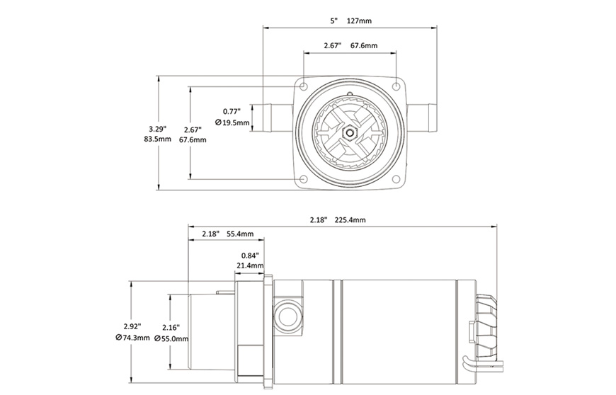 Model wyposażony jest w przyłącza o średnicy 0,78″, a jego wirnik wykonano ze stali nierdzewnej, co zapewnia trwałość i odporność na korozję nawet w środowisku morskim. Dla wersji 12 V zaleca się stosowanie bezpiecznika 20 A (lub 10 A przy 24 V).