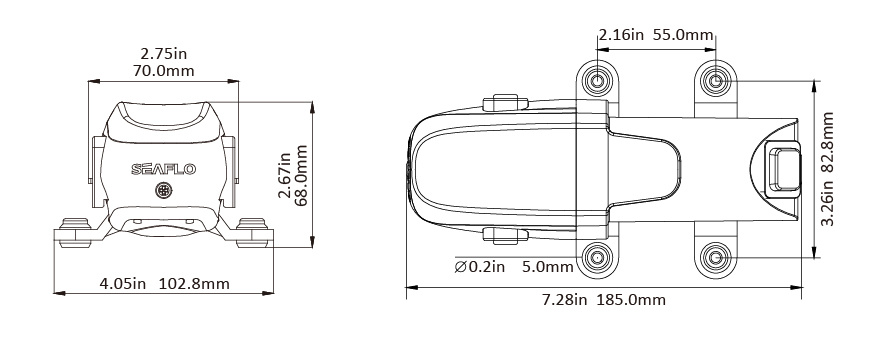 - Pompa Seaflo z serii 23 zapewnia wydajność 5,6 litra na minutę jest samozasysająca (jest w stanie zassać do 1,5 metra). Może pracować przez krótki czas na sucho.